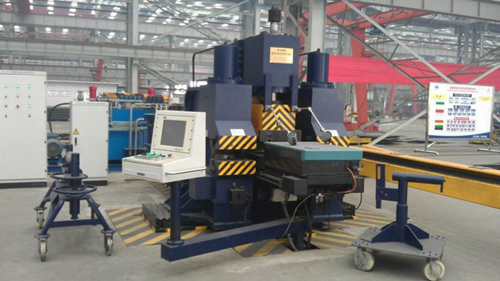 該設(shè)備是國際上最新機(jī)型,是船廠進(jìn)行肋骨加工的智能化設(shè)備。主要用于船體肋骨不同線型冷加工彎制,可加工球扁鋼、角鋼、T型材。通過對型材進(jìn)行自動(dòng)三維彎曲,可獲得平整的內(nèi)彎、外彎、S彎形狀的工件,也可進(jìn)行型材的校直和校平。工作過程是在全自動(dòng)狀態(tài)下進(jìn)行,并具備半自動(dòng)和手動(dòng)狀態(tài)下完成工作。