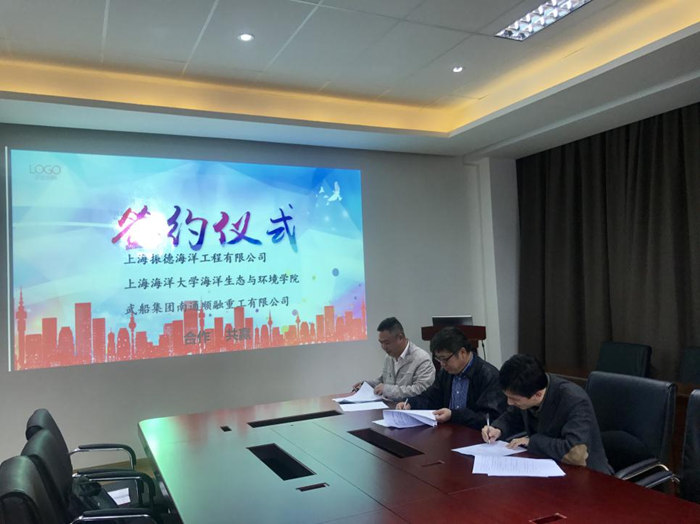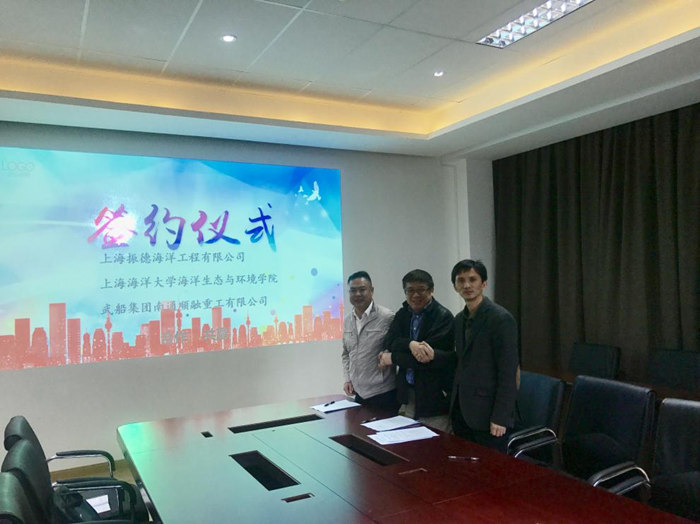 近日,武船集團南通順融重工在上海海洋大學科技園與上海振德海洋工程有限公司、上海海洋大學海洋生態與環境學院簽訂了“經濟型漁場項目”戰略合作協議。“經濟型漁場項目”是南通順融公司立足自身的實力和資源,落實第一屆第三次董事會精神的具體體現,是今年重點開發的經營項目,為南通順融重工順利轉型升級和持續健康發展提供了良好的載體。