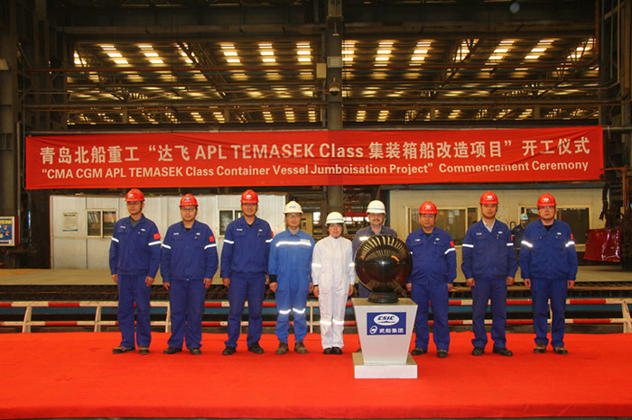 法國達飛公司系列集裝箱船改裝工程在武船集團北船重工開工