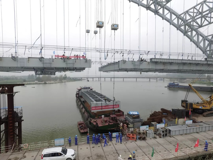 8月31日,隨著蘇嶺山大橋最后一片主梁節段吊裝到位,由武船重工股份承建的蘇嶺山大橋主橋成功實現合龍,兌現了武船集團對襄陽市人民和業主的承諾。武船重工股份副總經理、工會主席姜海松在施工現場全程組織指導主橋節段吊裝。