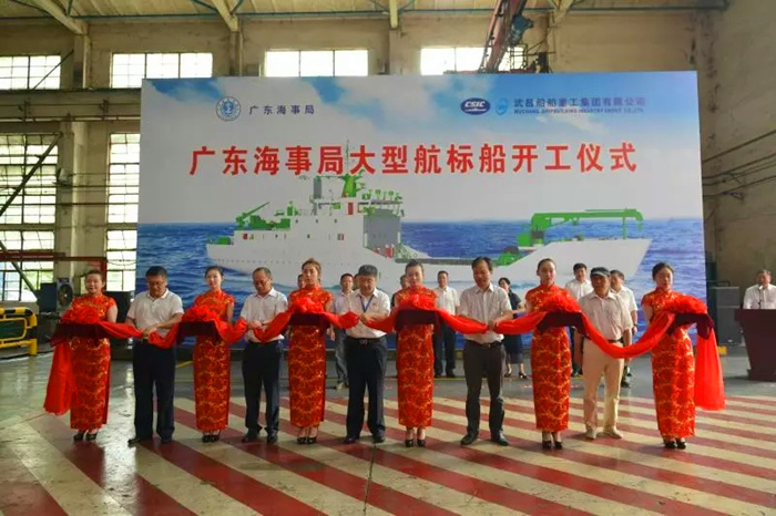2018年8月31日上午,廣東海事局大型航標(biāo)船開工儀式在武船集團(tuán)船舶公司內(nèi)業(yè)車間舉行,南海航海保障中心主任洪四雄、武船集團(tuán)總經(jīng)理陳?講渭涌?工儀式并發(fā)表講話。